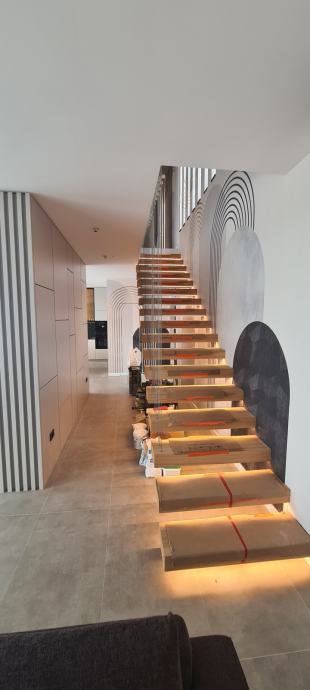 - Drveno stubište izvedeno u stilu lebdećih stepenica sa čeličnom podkonstrukcijom.