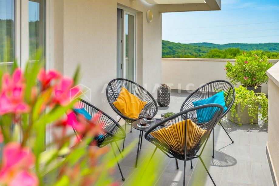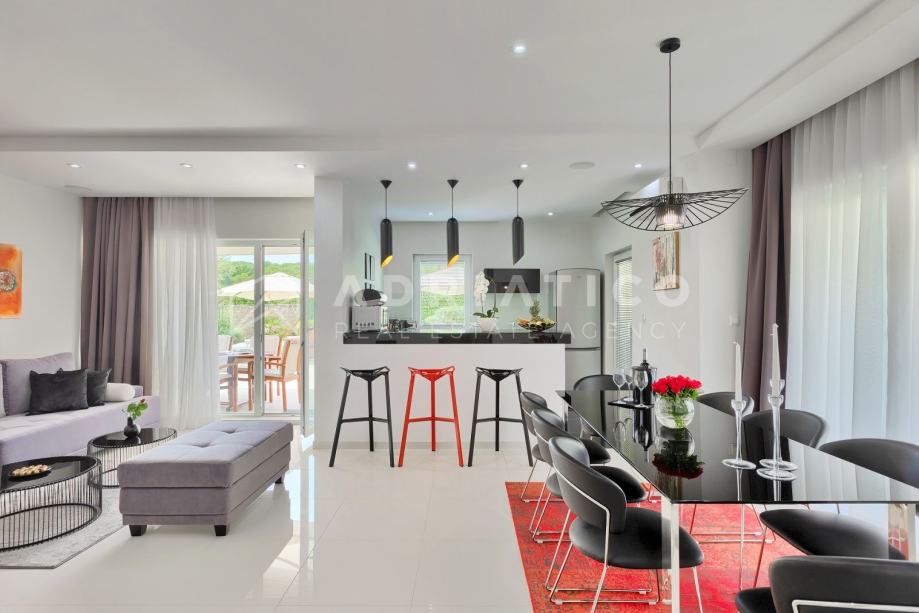 Ova moderna samostojeća kuća smještena je u mirnom okruženju Rovinjskog Sela a istovremeno blizu Rovinja, s brzim pristupom plažama, trgovinama i restoranima.