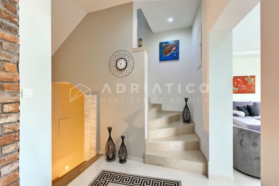 Idealna je za obiteljsku životnu, ali i kao luksuzna investicija. Kuća se prostire na dvije etaže i podrum, te nudi sve što je potrebno za udoban i kvalitetan život.