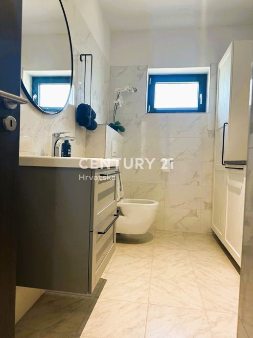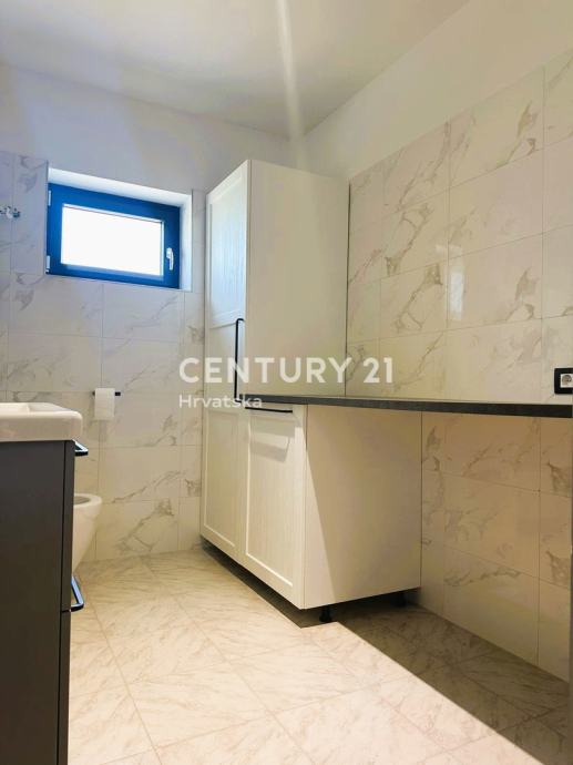 Prizemlje obuhvaća open space dnevni boravak s kuhinjom i blagovaonicom, kupaonicu/praonicu, ulazni prostor te praktična spremišta. Na katu se nalaze tri prostrane spavaće sobe, svaka s privatnom kupaonom, pružajući maksimalnu udobnost i privatnost. Stambena površina je ukupno 178 m2.