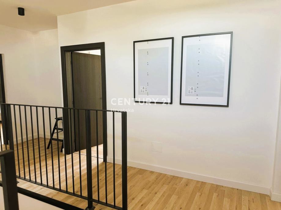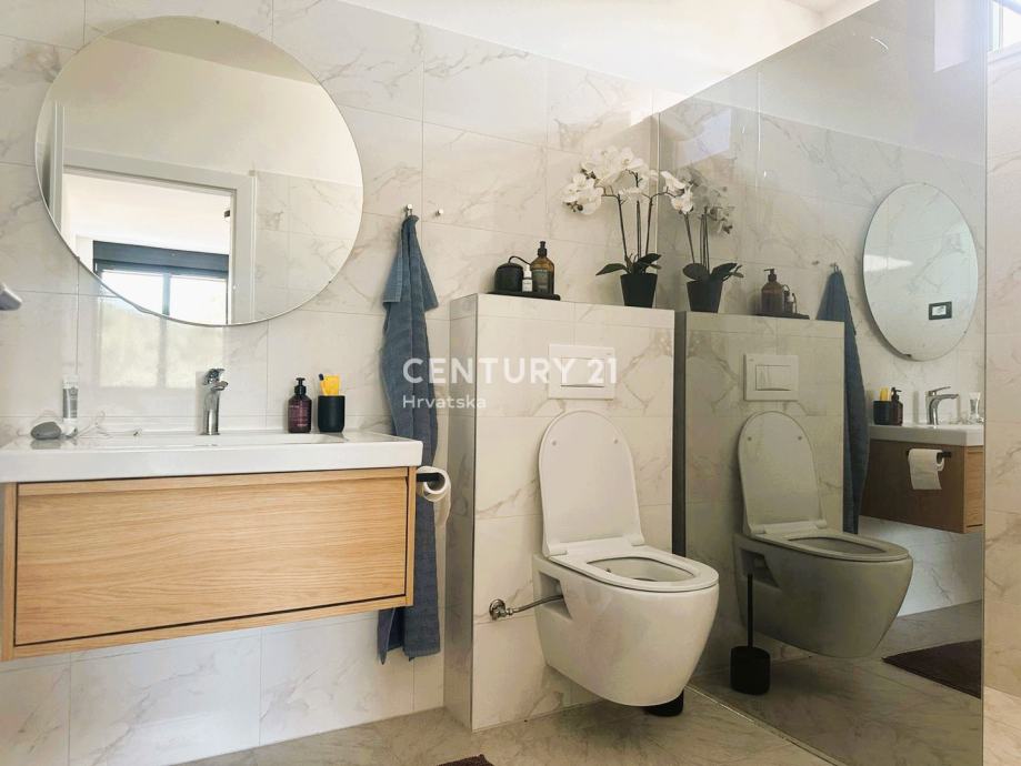 Prizemlje obuhvaća open space dnevni boravak s kuhinjom i blagovaonicom, kupaonicu/praonicu, ulazni prostor te praktična spremišta. Na katu se nalaze tri prostrane spavaće sobe, svaka s privatnom kupaonom, pružajući maksimalnu udobnost i privatnost. Stambena površina je ukupno 178 m2.