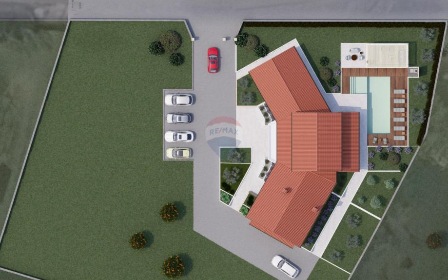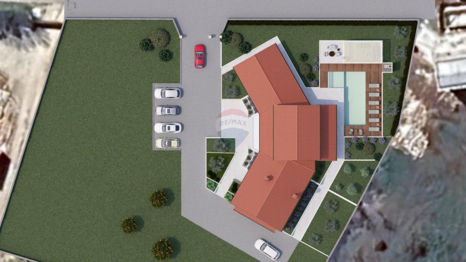 Kuća se sastoji od podruma, prizemlja i prvog kata. Kuća je podjeljena u 2 jedinice. Jedna jedinica je predviđenaa za stan s dnevnim boravkom, terasom, 4 spavaće sobe, 3 kupaonice i wc, dok druga jedinica ima namjenu poslovnog prostora gdje je predviđena dentalna ordinacija. Sve prostorije će imati podno grijanje. Svaka jedinica ima odvojena brojila vode i struje. U podrumu se nalaze 2 garažna mjesta i dodatne dvije prostorije.