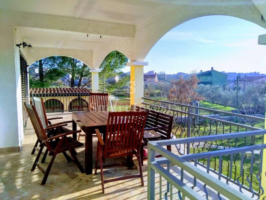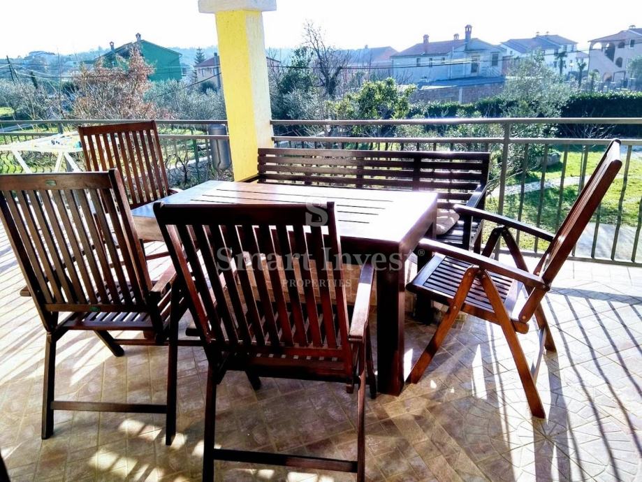 ROVINJSKO SELO, prodaje se etaža ukupne izgrađene površine 202 m2 koju čine apartman koji se sastoji od dnevnog boravka, kuhinje, spavaće sobe, kupaonice, lijepe natkrivene terase, dvorišta i uređenog vrta te parkinga. Apartman je kategoriziran sa 3 zvijezdice te ima poseban ulaz.