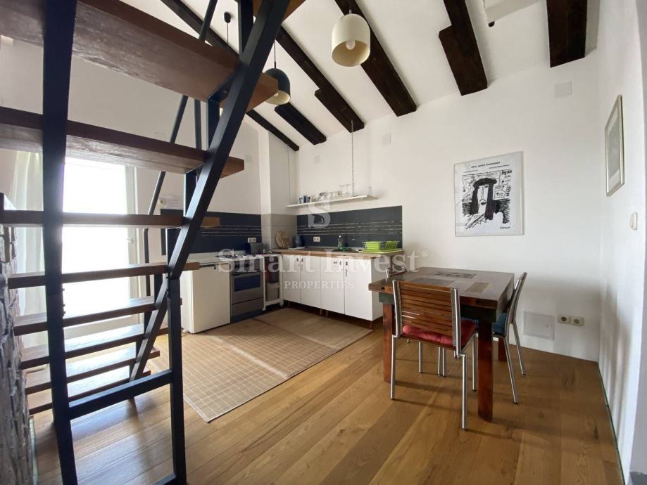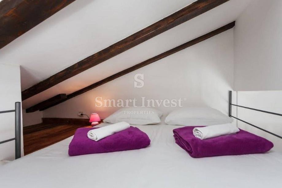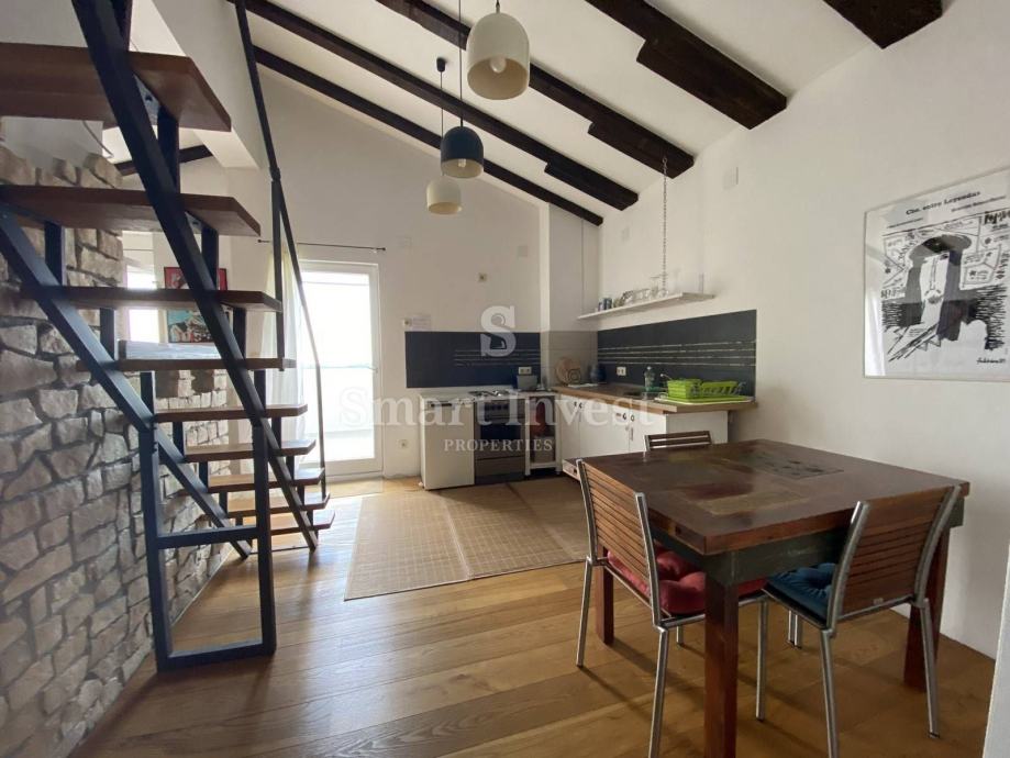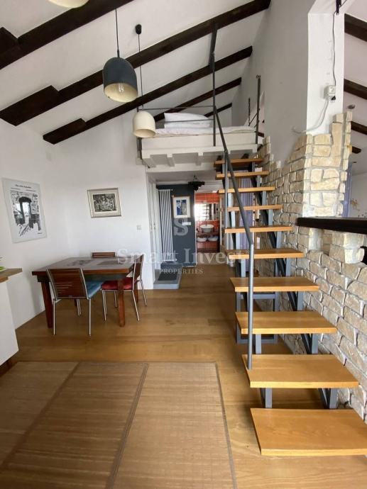 Sastoji se od velikog otvorenog prostora u kojem je dnevni boravak, kuhinja radna površina, galerija za spavanje, dječja sobica, velika kupaona, terasa sa prekrasnim pogledom na more i okoliš.