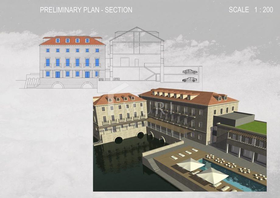 Lokacija je također izuzetno povoljna - 15 minuta vožnje od centra Dubrovnika i samo pola sata vožnje od Dubrovačke zračne luke. Osim toga, nekretnina se nalazi u M2 zoni i nije pod zaštitom konzervatora, što znači da su mogućnosti za razvoj gotovo neograničene.