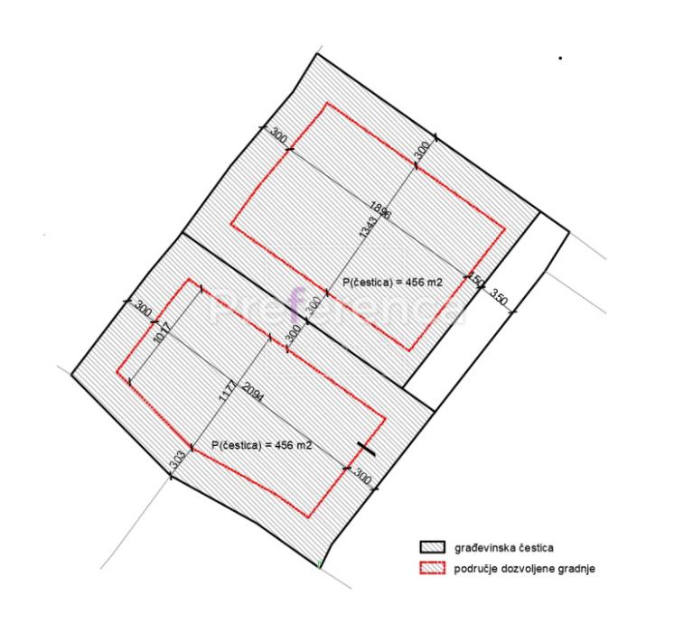 - Uvjeti za samostojeću stambenu zgradu ZGRADA TIP A: min. površina čestice: 350 m2 min. širina čestice: 14,0 m max. koef. izgrađenosti: 0,35 max. tlocrtna površina: 159,6 m2 max. koef. iskoristivosti nadzemno: 0,7 max. bruto površina nadzemno: 319,2 m2 max . koef. iskoristivosti: 1,6 max. bruto površina: 729,6 m2 max. katnost: Po+S+P+1 max. visina: 7,5m (8,5m na kosini >12%) max. broj stambenih jedinica: 3 min. broj parking mjesta po stanu: 1 min. zelenila: 20% 2. Udaljenost od regulacijskog pravca 5,0 m 3. Udaljenost od susjedne međe 3,0 m 4. Udaljenost od pristupnog puta 1,5 m