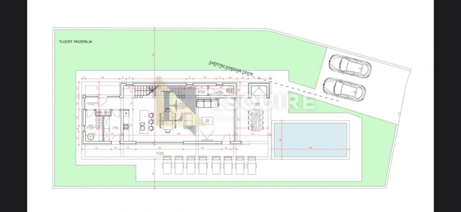 *U dvorištu su predviđena dva parkirna mjesta te bazen dimenzija 8 x 4 m.