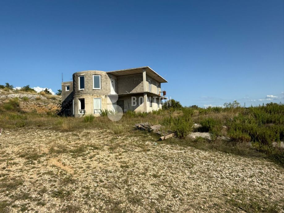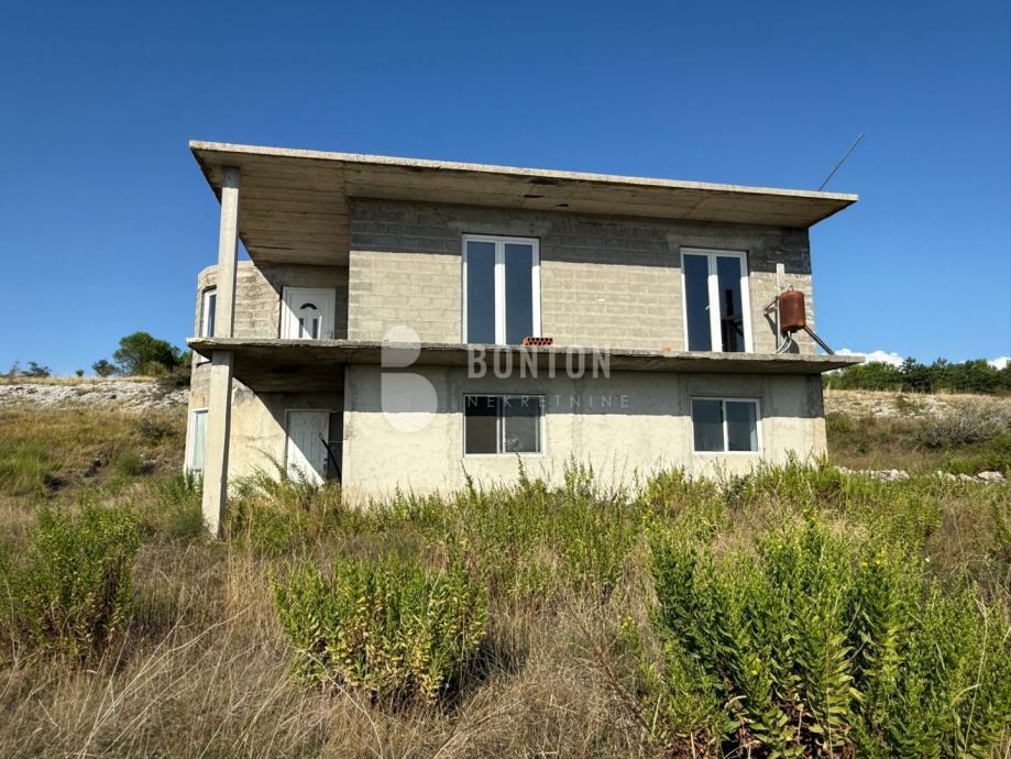 Sastoji se od Prizemlja i prvog kata koji je izgrađen u Row-bau.Otvori su zatvoreni s PVC Stolarijom., koji je spreman za Dogradnju prema odobrenom projektu. Mogučnos dogradnje popratnih sadržaja Garaže, konobe i bazena jer zemljište je veliko.
