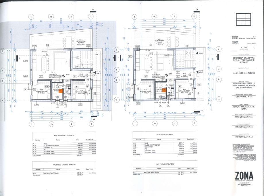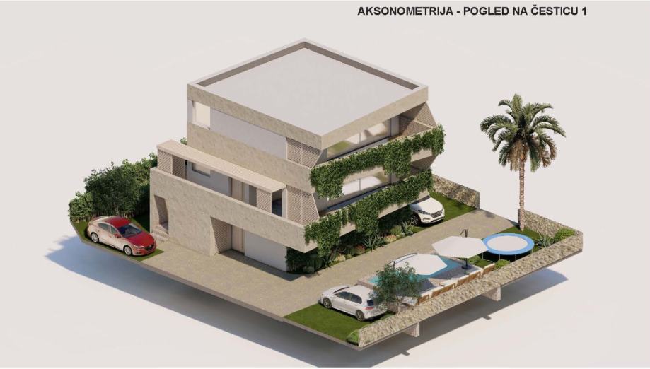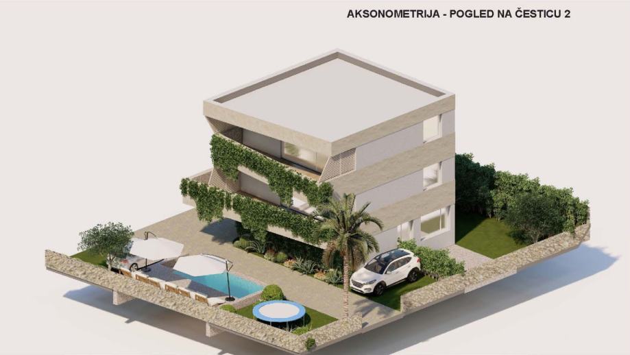 Prodaju se dva apartmana. Apartmani se nalaze na prvom i drugom katu zgrade koja se sastoji od tri apartmana .Sastoje se od kuhinje povezane sa dnevnim boravkom iz kojeg se izlazi na veliku terasu. Apartman ima dvije spavaće sobe, kupatilo i odvojeni WC. Površina apartmana je 50 m2 plus 20m2 terase. Uz apartman ide jedno parkirno mjesto u dvorištu. Apartmani su udaljeni 100 m od mora. Plaža je sitni šljunak i more je čisto. Prodajemo kao neizgrađene