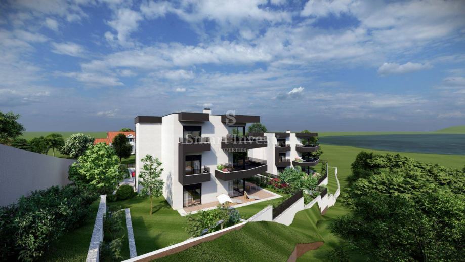Stan se nalazi u maloj zgradi u izgradnji sa svega 3 stana (svaka etaža jedan stan) s pogledom na more prema Opatiji. Lociran je 5min vožnje od Kastva i Matulja, škola, vrtića, dućana, a istovremeno na mirnoj lokaciji odličnoj za ugodan obiteljski život.