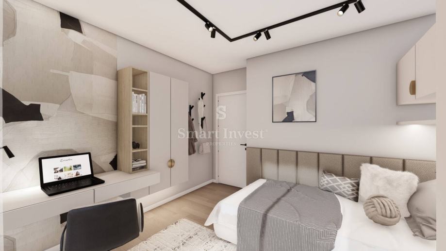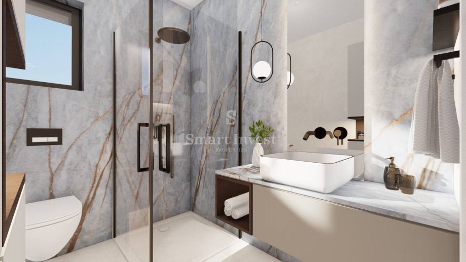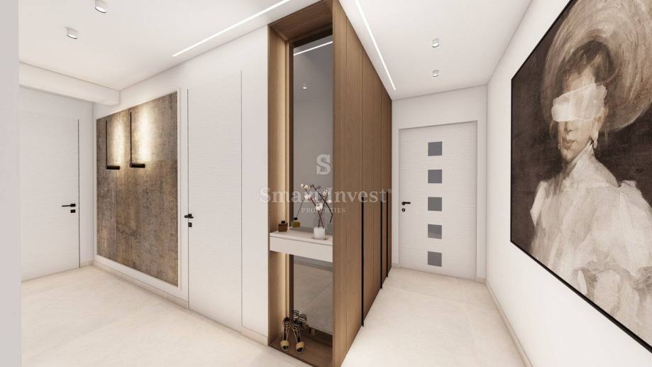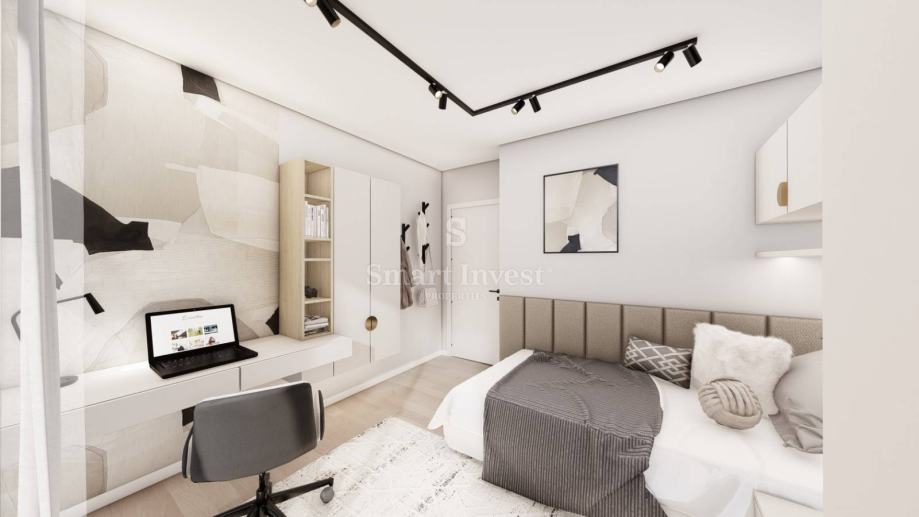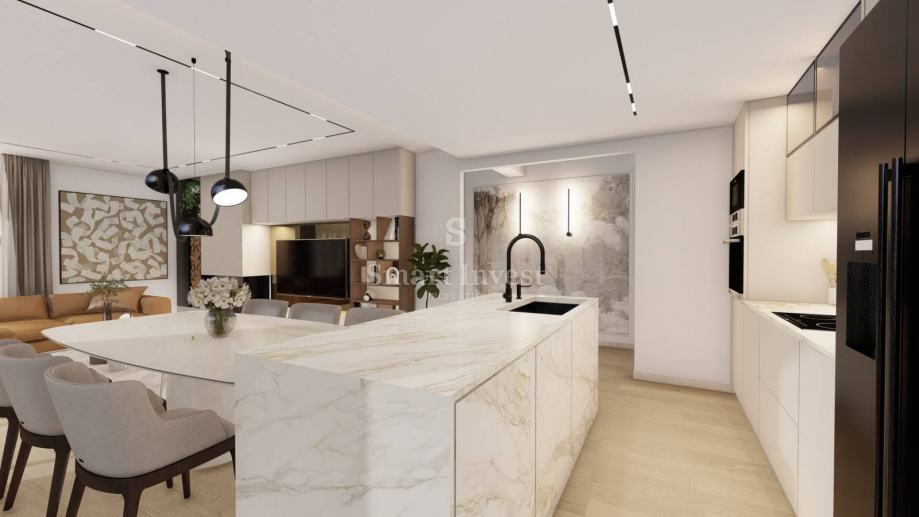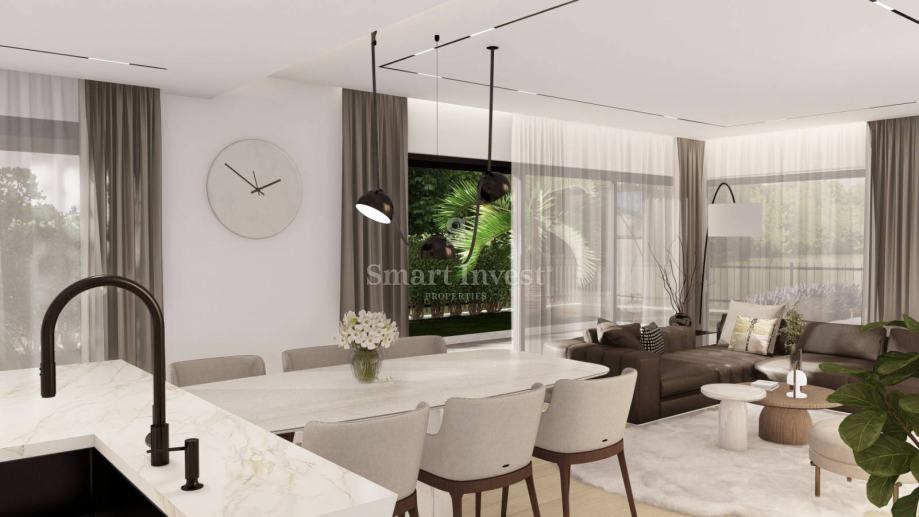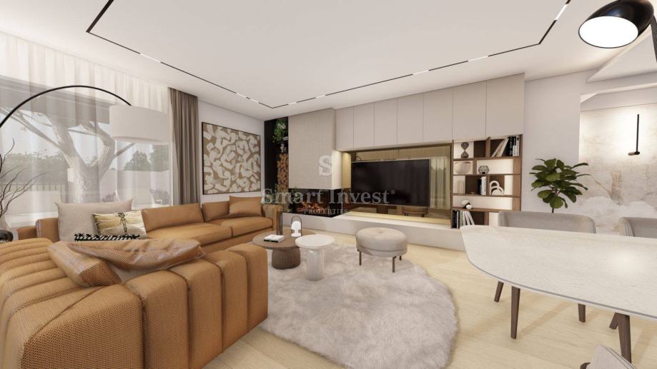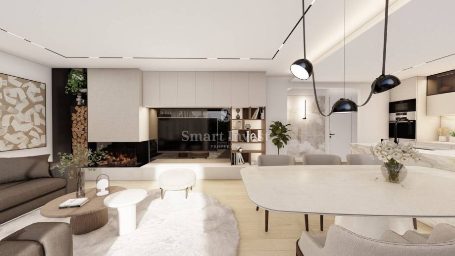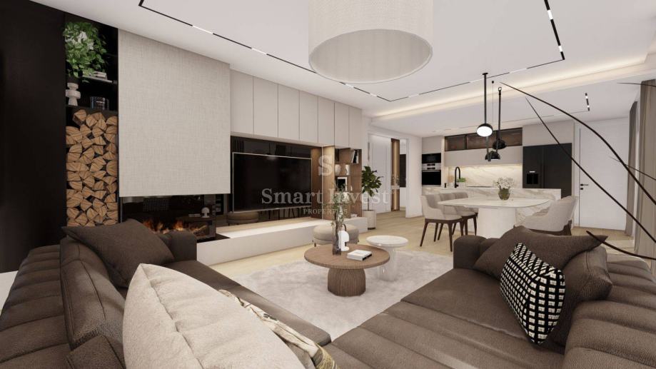 Stan se prodaje ključ u ruke, bez namještaja (vizualizacije u oglasu prikazuju idejno rješenje kako se stan može namjestiti). Grijanje će biti podno uz dizalicu topline, klima uređaj u dnevnom boravku, keramika 1. kvalitete u cijelom stanu. Izvod za kamin u svakom stanu. Automatsko otvaranje garažnih vrata, video portafon i uređen okoliš.