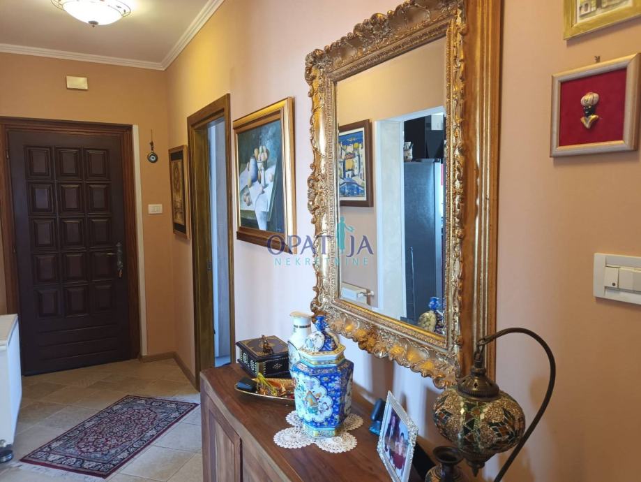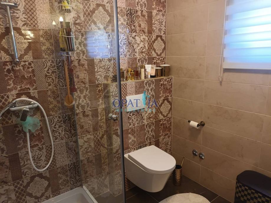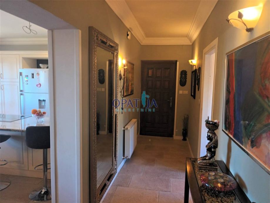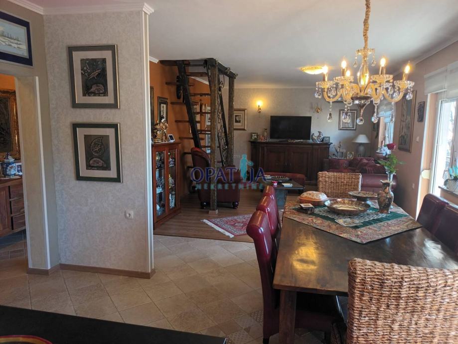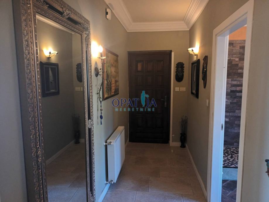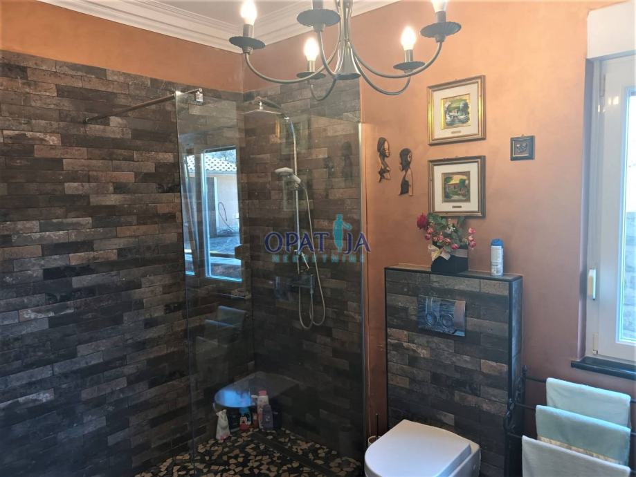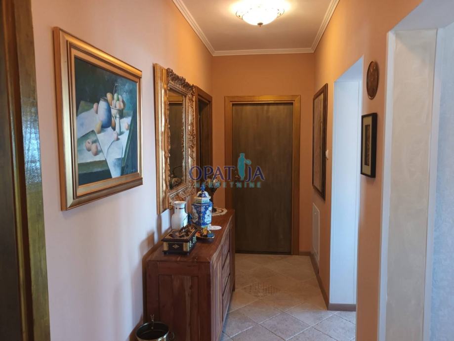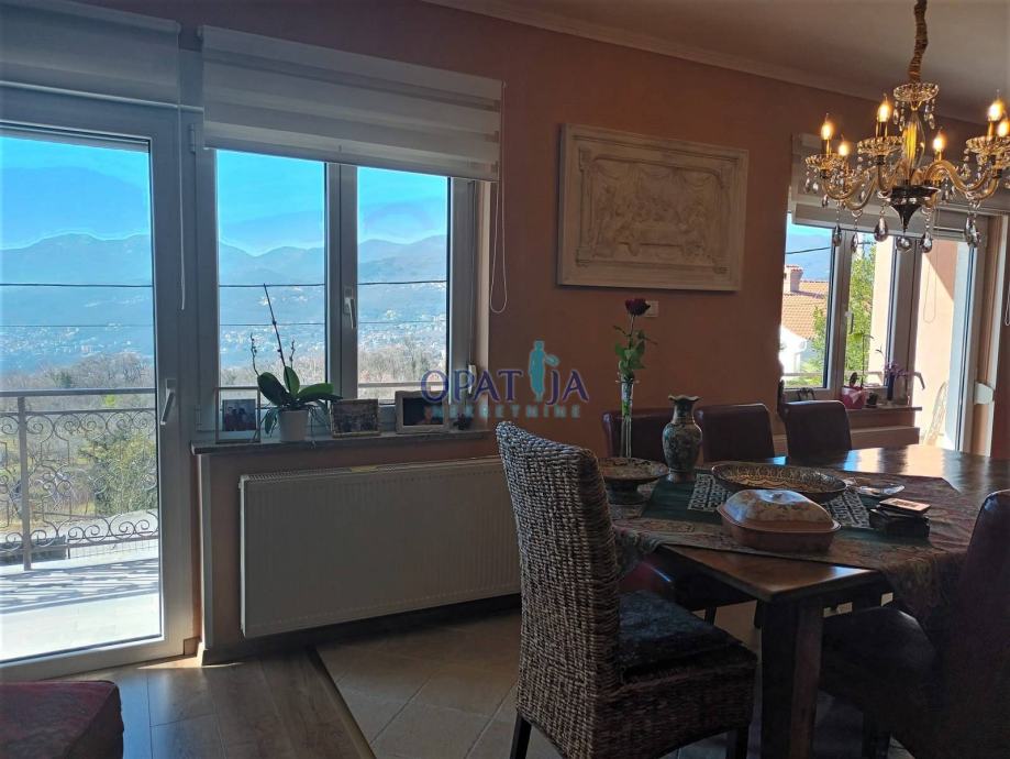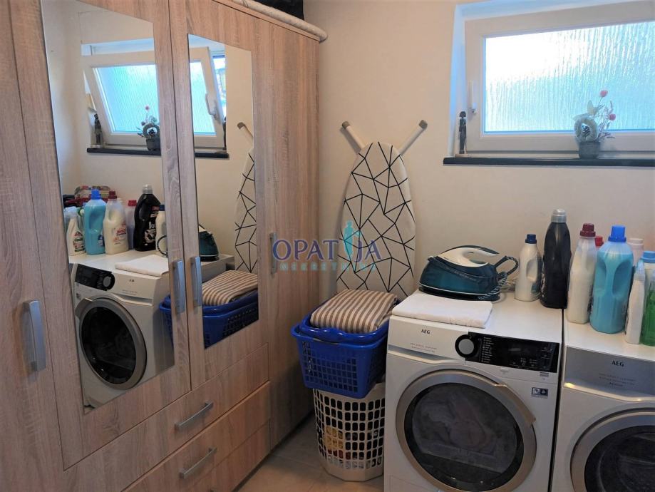 U dnevnom boravku nalaze se stepenice koje vode u visoko potkrovlje s jednom spavaćom sobom koja ima balkon s panoramskim pogledom na more, Opatiju, Učku i otok Cres, vlastitu garderobu i kupaonu, spremište.