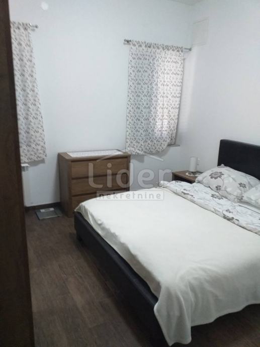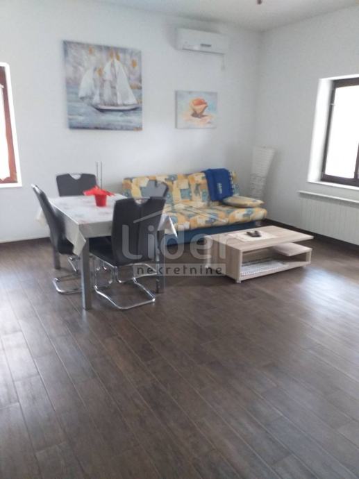 Rubeši, jako lijepi dvosoban stan sa većim dnevnim boravkom, veličine 60 m2, prizemlje obiteljske kuće. Sama pozicija kuće je odlična, mirna slijepa ulica, okruženje obiteljskih kuća, prelijepi pogled na more. Stan je kompletno namješten i opremljen vrlo ukusno i kvalitetno. Pogotovo je interesantno za manju familiju radi korištenja dvorišta i terase sa kaminom. Osigurano parkirno mjesto. Ograđena okućnica. Lokacija dobra, blizina potrebnih sadržaja.