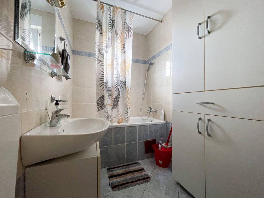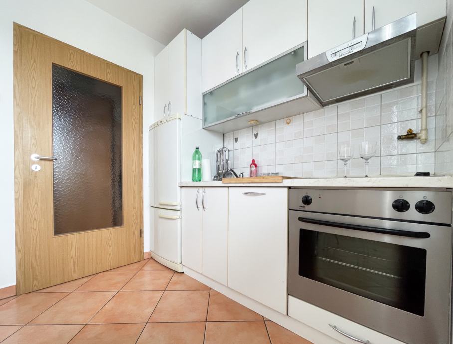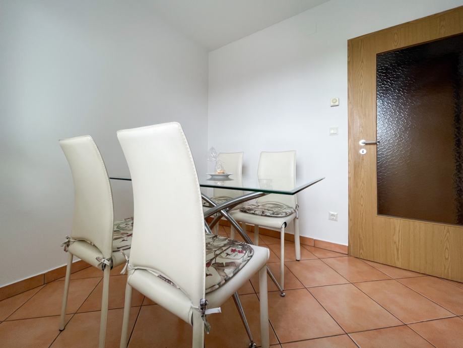 Smješten je na 3., od ukupno 3 kata stambene zgrade. Stan je ugodan i svijetao, opremljen svim potrebnim namještajem za ugodan život. Također ima veliki balkon s kojeg se prostire prekrasan pogled na zalazak sunca.
