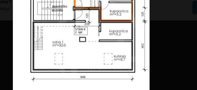 Stan se nalazi na 2. (zadnjem) katu, potkrovlje+galerija, a sastoji se od:
