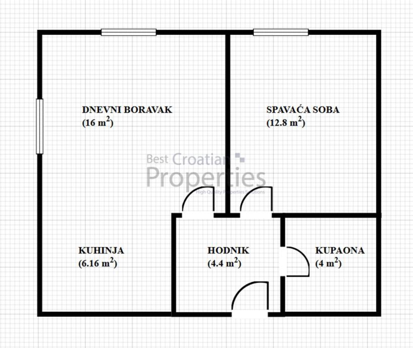 Sami stan ima zatvorene površine 43.36m2 te DVA vanjska parkirna mjesta.