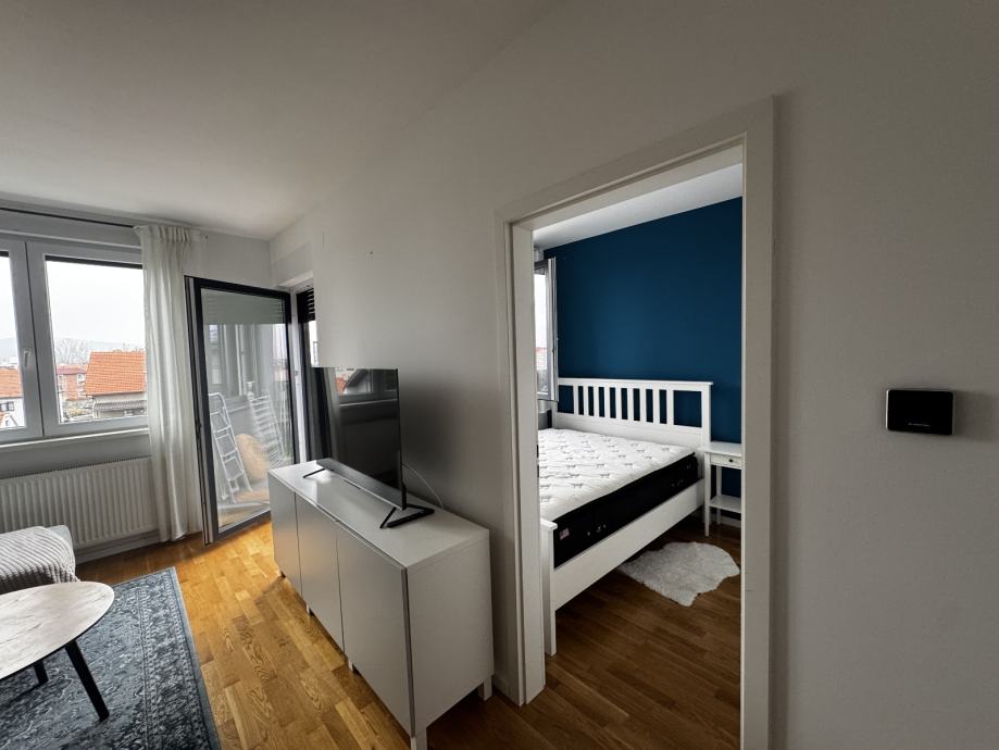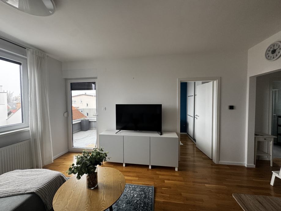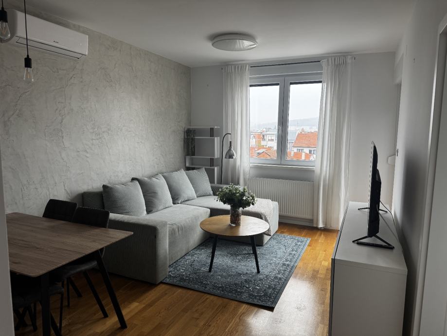 Prodaje se lijepo uređen i odmah useljiv dvosoban stan u Aninoj ulici na Rudešu, idealan za samce ili mladi par. Nalazi se na trećem (i posljednjem) katu moderne zgrade iz 2018. godine i ima polunatkrivenu terasu s otvorenim pogledom na sjever, istok i zapad.