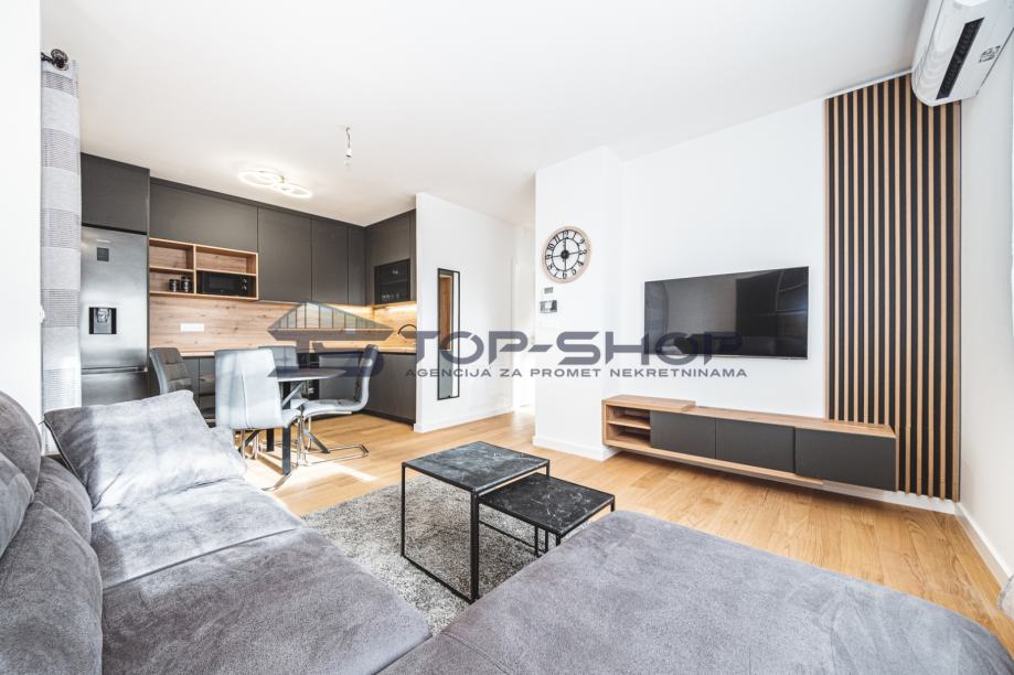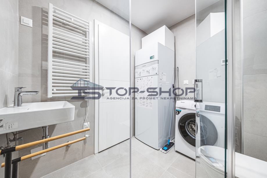 Stan je opremljen modernom kuhinjom s aparatima, perilicom posuđa, perilicom rublja, krevetom i TV-om, što budućim najmoprimcima omogućuje useljenje bez dodatnih ulaganja. Sigurnost je dodatno osigurana protuprovalnim vratima.