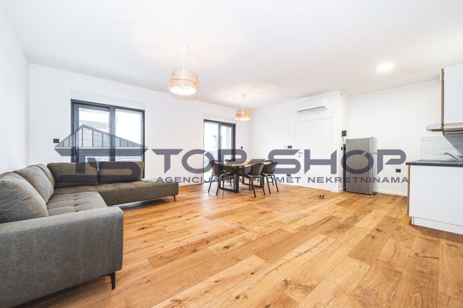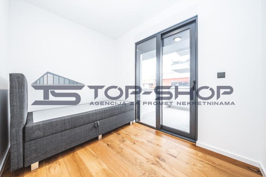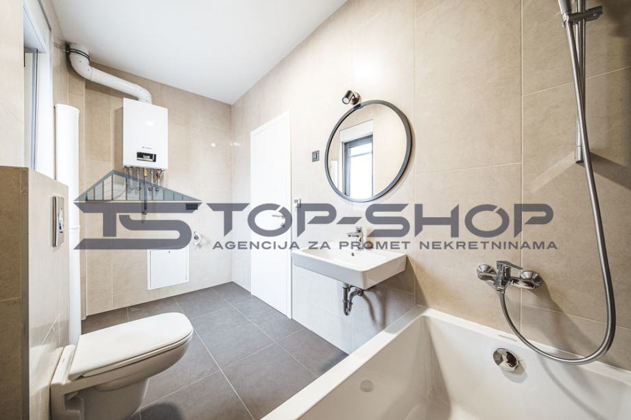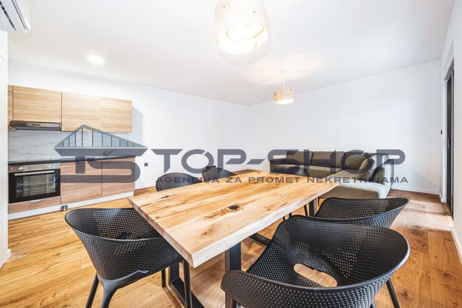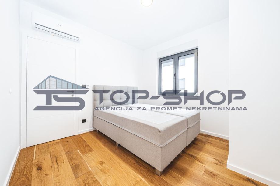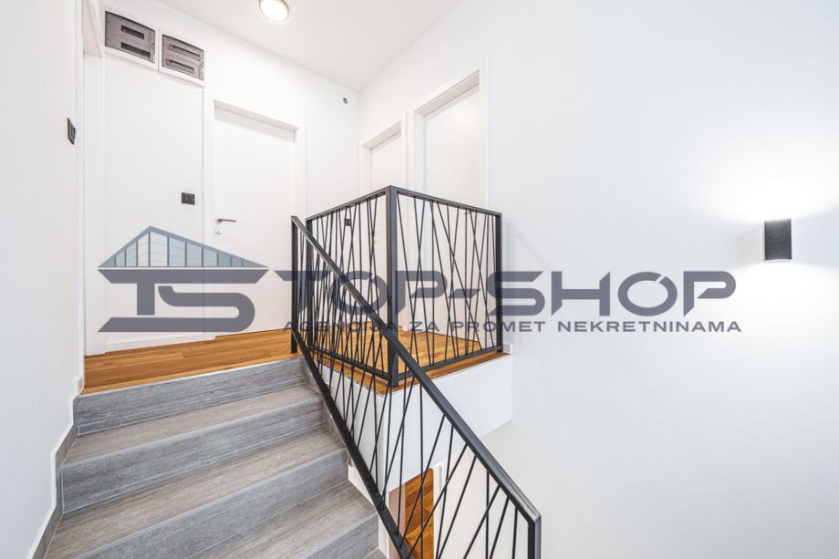 Stan je opremljen aluminijskom stolarijom, električnim podizačima za rolete, podnim grijanjem te klimatizacijom u svim prostorijama.