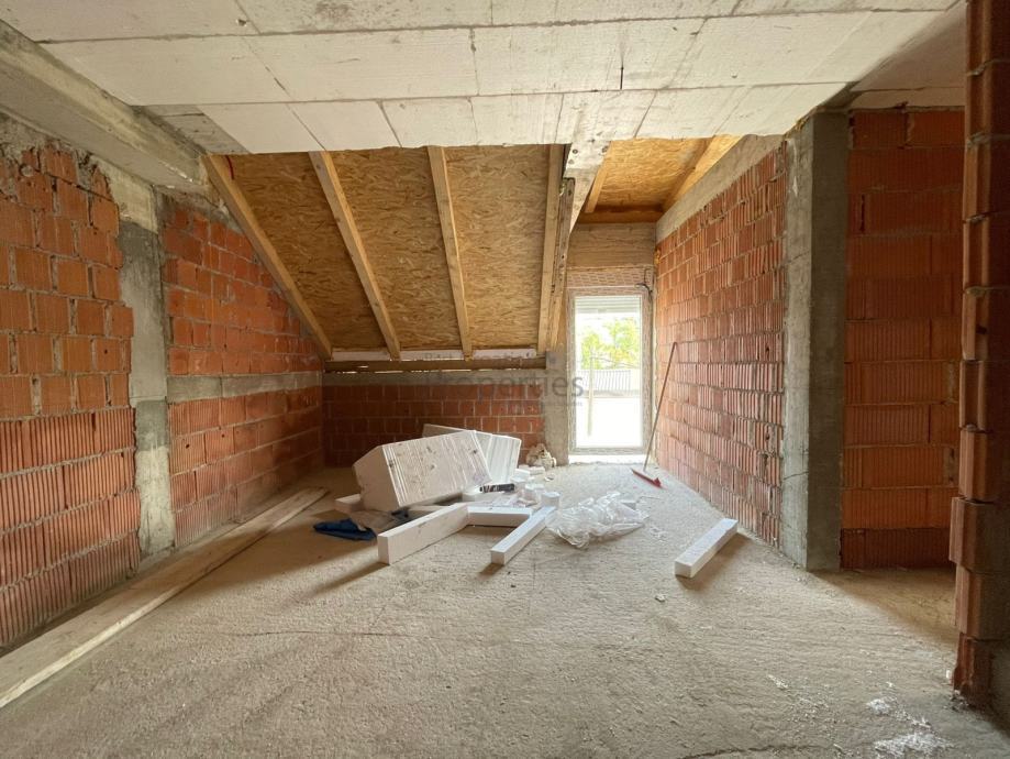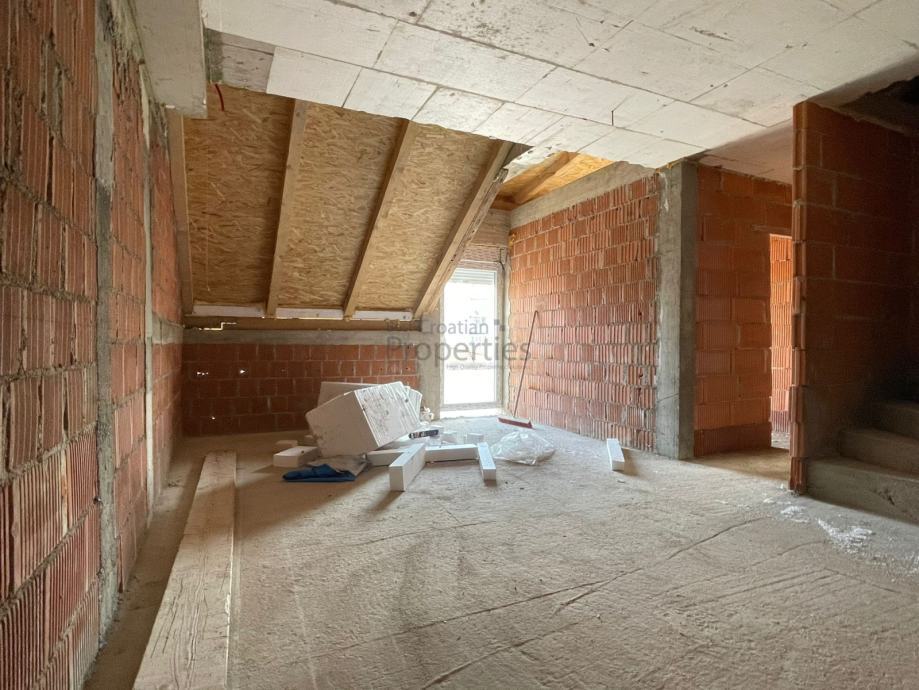Gornja etaža ukupno iznosi 35m2 s koeficijentima, sastoji se od; dvije spavaće sobe i dodatne kupaonice.