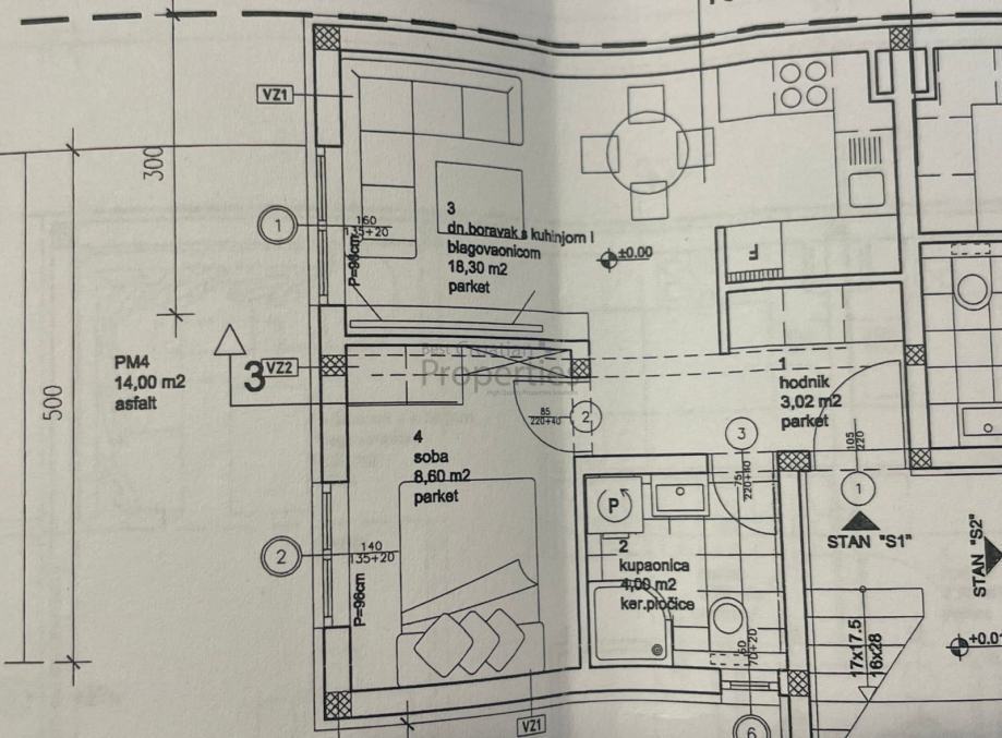 Stanu pripada vanjsko parkirno mjesto (12.50m2) ukupna kvadratura s koeficijentima iznosi 101.76m2.