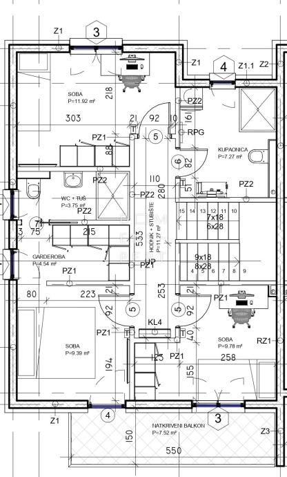 - konstrukcija će biti izrađena od armiranog betona s prezidama od knaufa unutar stanova