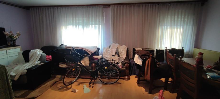 U prizemlju je nekada bila odvojena spavaća soba, ali je sada spojena s boravkom, tako se dobio puno veći boravak, ali se može vratiti u prvobitno stanje, jer ima 2 prozora tako da se ponovno dobije odvojena spavaća soba.