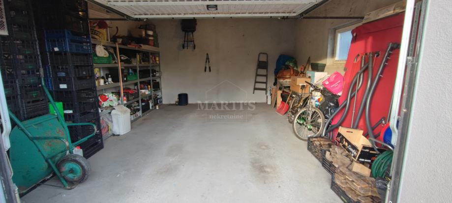 Kuća je veličine 9x9m, a garaža je površine 25,35m2 (3,25x7,80), stane veliki auto i još ima dovoljno prostora za stalaže.