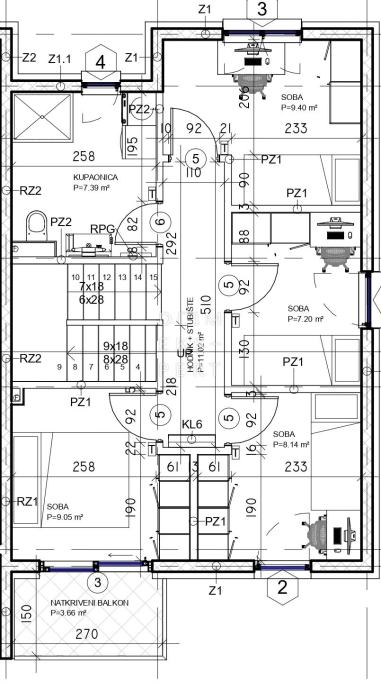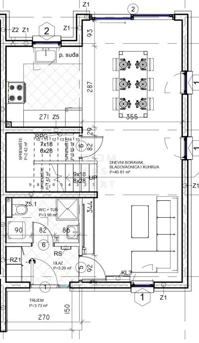 - dnevni boravak s blagovaonicom i kuhinjom (40.61 m²)