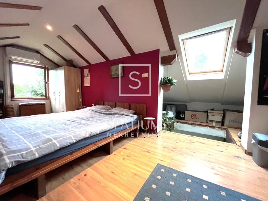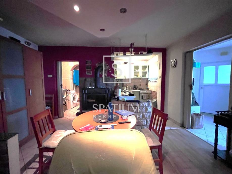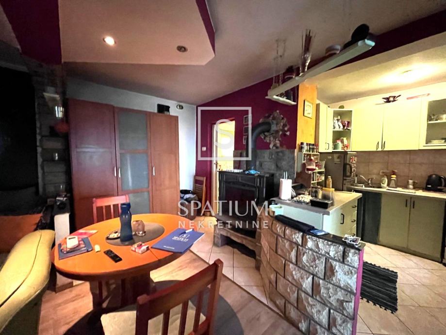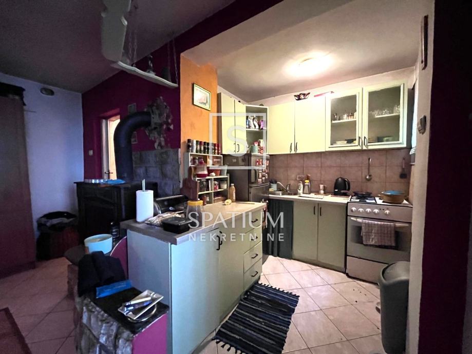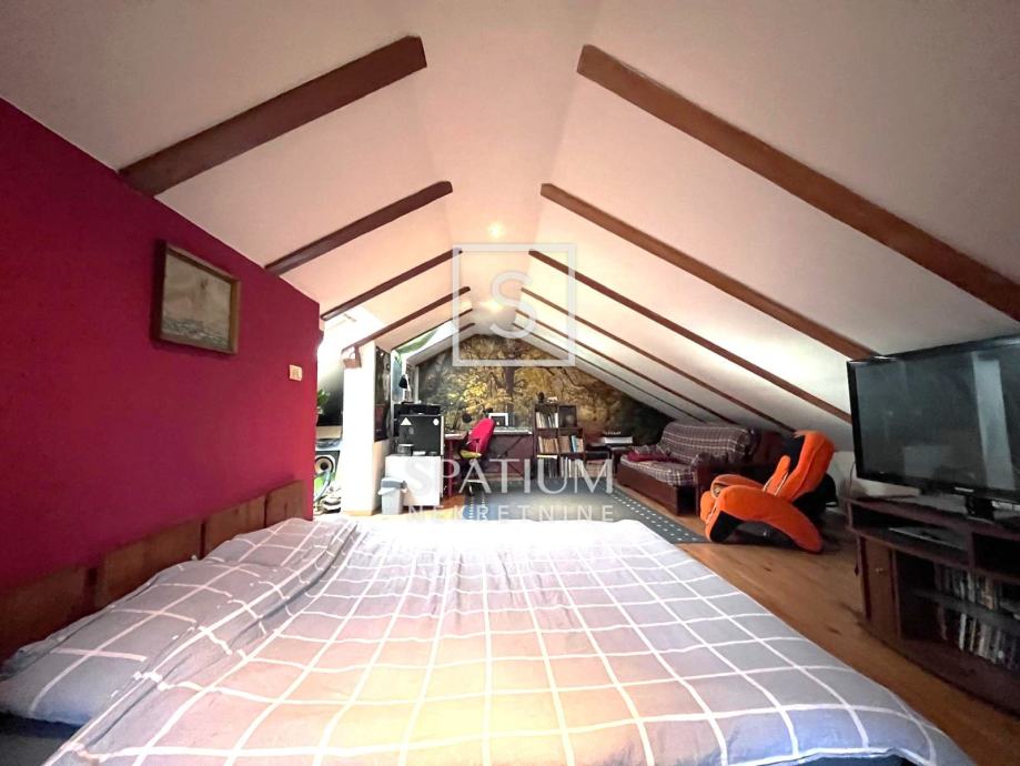 RUJEVICA, u ponudu smo dobili samostojeću kuću na mirnoj lokaciji. Kuća se sastoji od prizemlja i visokog potkrovlja, tako da je u prizemlju smješten ulazni hodnik, kuhinja s blagovaonicom i dnevnim boravkom, te kupaonica. Iz dnevnog boravka se, kao i kroz glavni ulaz u stan, izlazi na terasu od oko 80m2 i ostatak okućnice od oko 70m2. Unutarnje stepenište u hodniku stana vodi na kat gdje je smještena spavaća soba sa uredom, te skladišni prostor za osobne stvari. Spavaća soba se može pregraditi da se dobije još jedna soba. U kući je postavljena peć na drva, dvije jedinice klima uređaja, nova PVC stolarija, te je potrebno uređenje estetske prirode kako bi kuća ispunila svoj puni potencijal. Posebnost nekretnine krije se u njenoj poziciji jer se nalazi tik do svih sadržaja i na 10 minuta od centra grada, dok se s druge strane nalazi na jako mirnoj lokaciji pogodnoj za obitelji.