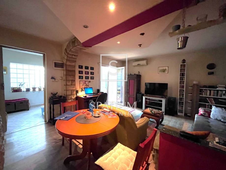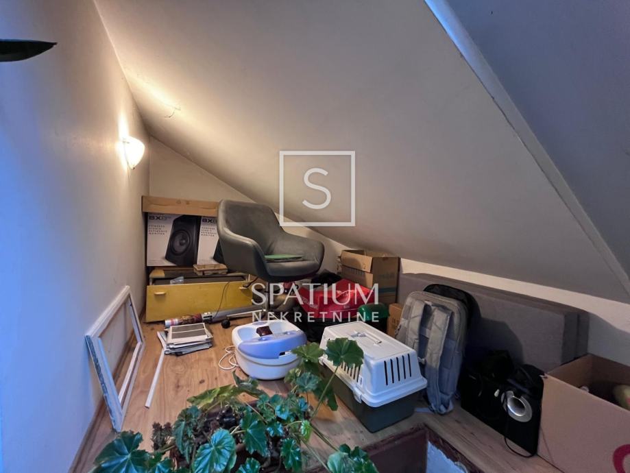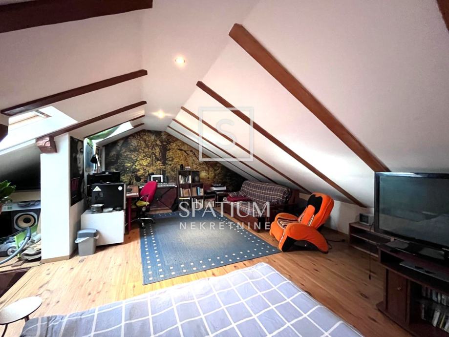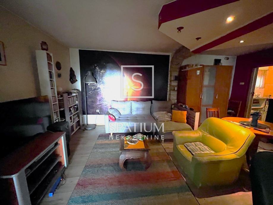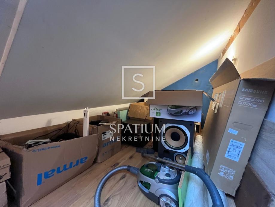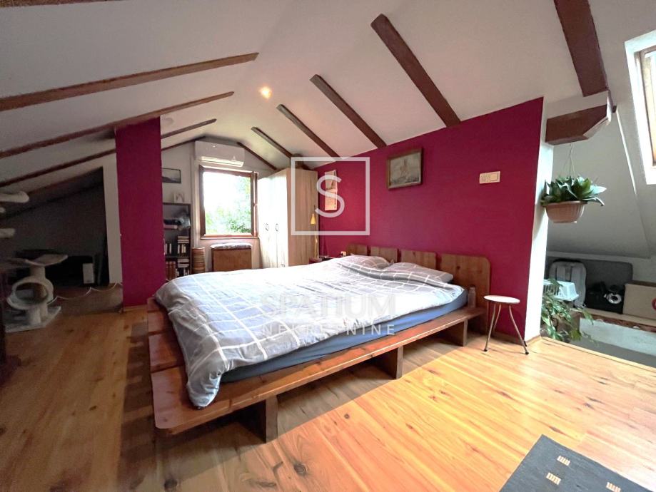 RUJEVICA, u ponudu smo dobili samostojeću kuću na mirnoj lokaciji. Kuća se sastoji od prizemlja i visokog potkrovlja, tako da je u prizemlju smješten ulazni hodnik, kuhinja s blagovaonicom i dnevnim boravkom, te kupaonica. Iz dnevnog boravka se, kao i kroz glavni ulaz u stan, izlazi na terasu od oko 80m2 i ostatak okućnice od oko 70m2. Unutarnje stepenište u hodniku stana vodi na kat gdje je smještena spavaća soba sa uredom, te skladišni prostor za osobne stvari. Spavaća soba se može pregraditi da se dobije još jedna soba. U kući je postavljena peć na drva, dvije jedinice klima uređaja, nova PVC stolarija, te je potrebno uređenje estetske prirode kako bi kuća ispunila svoj puni potencijal. Posebnost nekretnine krije se u njenoj poziciji jer se nalazi tik do svih sadržaja i na 10 minuta od centra grada, dok se s druge strane nalazi na jako mirnoj lokaciji pogodnoj za obitelji.