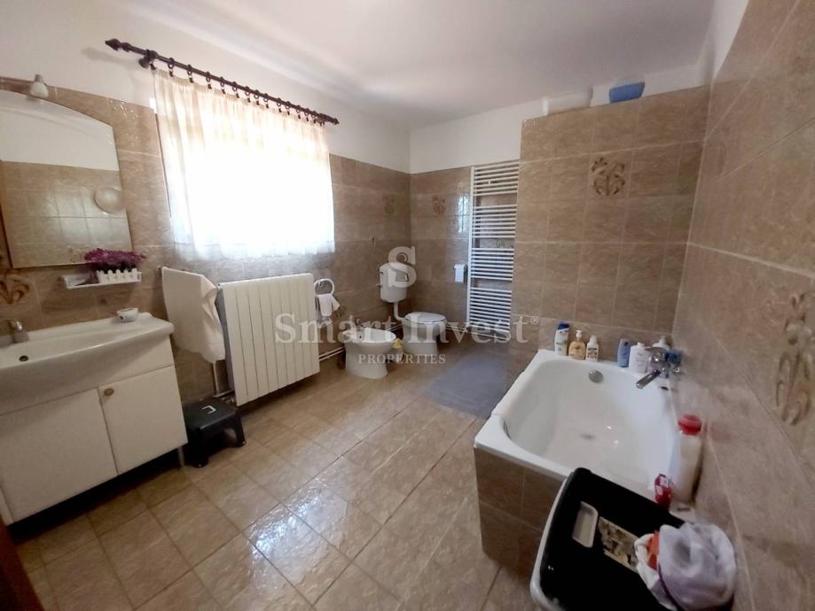 Kuća je vrlo uredna i održavana, ima velike balkone i terasu, lijepo uređenu okućnicu od 700 m2 te centralno grijanje.