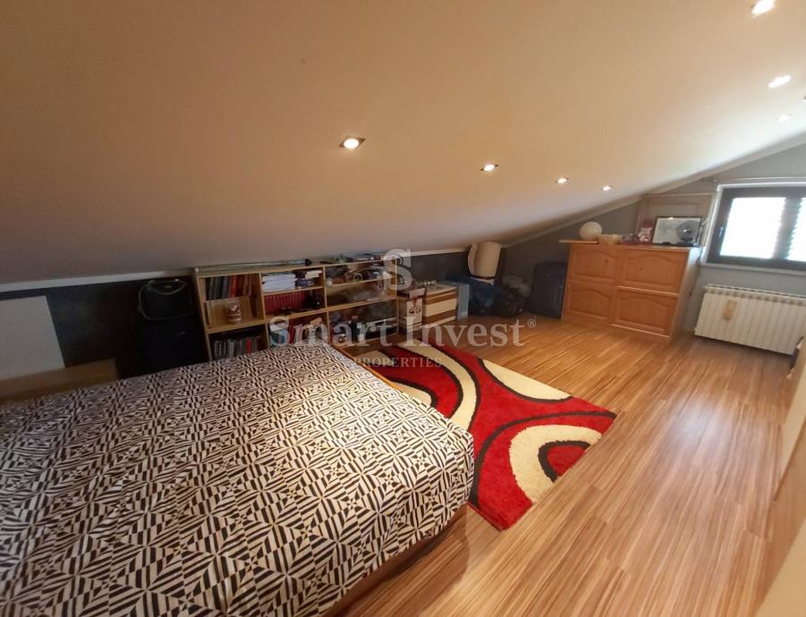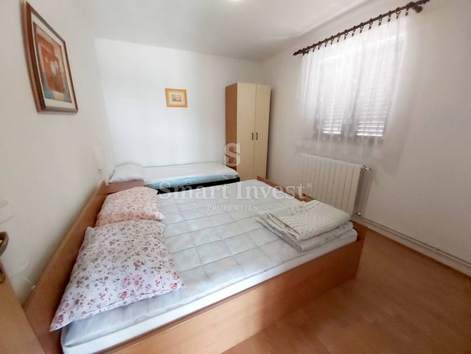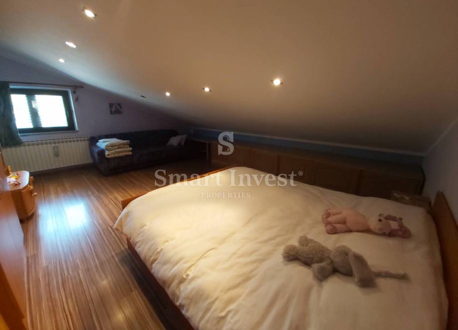 Na 1. katu je prostran dnevni boravak s kuhinjom i blagovaonicom, soba i kupaonica, dok su u mansardi 2 sobe, mini kuhinja s blagovaonicom te kupaonica.