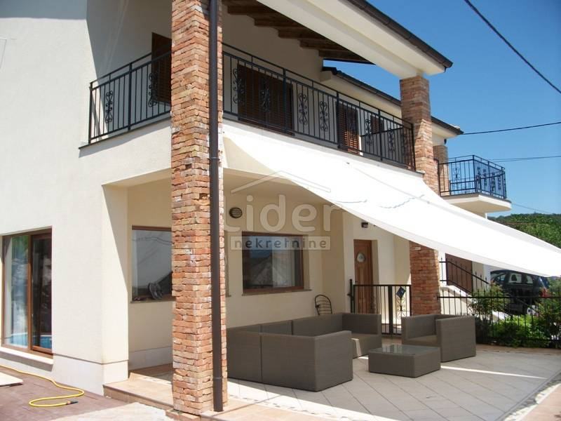 RUKAVAC, SAMOSTOJEĆA VILA 260M2, P+1, VRHUNSKA. DVOETAŽNI STAN KOJI SE U PRIZEMLJU SASTOJI OD VELIKOG DNEVNOG BORAVKA SA KUHINJOM I BLAGAVAONICOM, KUPAONICE TE GARAŽE IZ KOJE SE ULAZI DIREKTNO U STAN I ULAZNOG IMPOZANTNOG HOLA IZ KOJEG SE STEPENICAMA PENJE NA KAT NA KOJEM SE NALAZE 3 SOBE, GARDEROBA I KUPAONICA VELIČINE CCA 20 M2 IZ KOJE JE MOGUĆE IZAĆI NA PREDIVNU TERASU SA KOJE SE PRUŽA ČAROBAN POGLED. GRIJANJE JE CENTRALNO ETAŽNO NA PELETE, A U DNEVNOM DIJELU JE I KAMIN KOJI U ZIMSKOM PERIODU DAJE POSEBAN UGOĐAJ. OKUĆNICA JE VRHUNSKI UREĐENA, POPLOČANA STARIM CIGLAMA NA KOJOJ SE NALAZI BAZEN KOJI SE NALAZI TOČNO ISPRED DNEVNOG BORAVKA. NA OKUĆNICI OD 970 M2 JE I NATRKRIVENA SJENICA SA ROŠTIELJEM TE STARA MASLINA. OKRUŽENJE JE IZUZETNO MIRNO, A LUXSUZ ODIŠE U SVAKOM SEGMENTU TE JE KOD SAME IZGRADNJE KORIŠENA SAMO VRHUNSKA OPREMA .