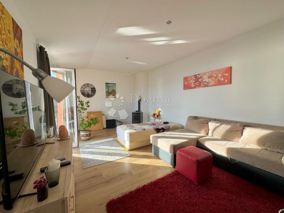 Ovaj prostrani stan od 82 m² trenutačno ima raspored koji uključuje jednu spavaću sobu i prostrani dnevni boravak, kuhinju i kupaonu te prostranu terasu no s mogućnošću preinaka u dvosoban prostor, što ga čini izuzetno fleksibilnim za različite potrebe stanovanja.