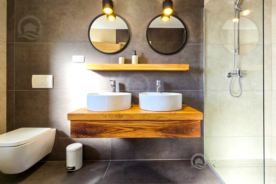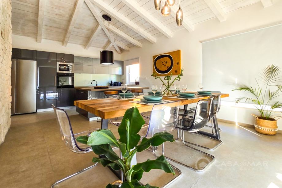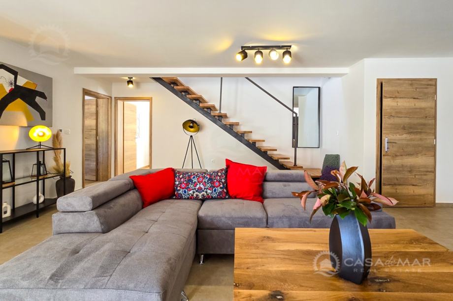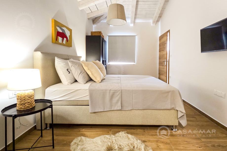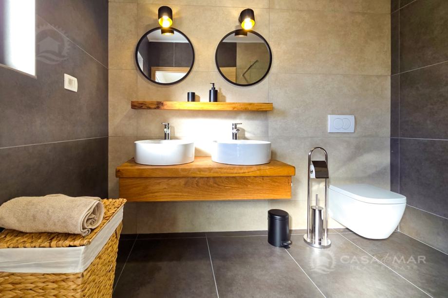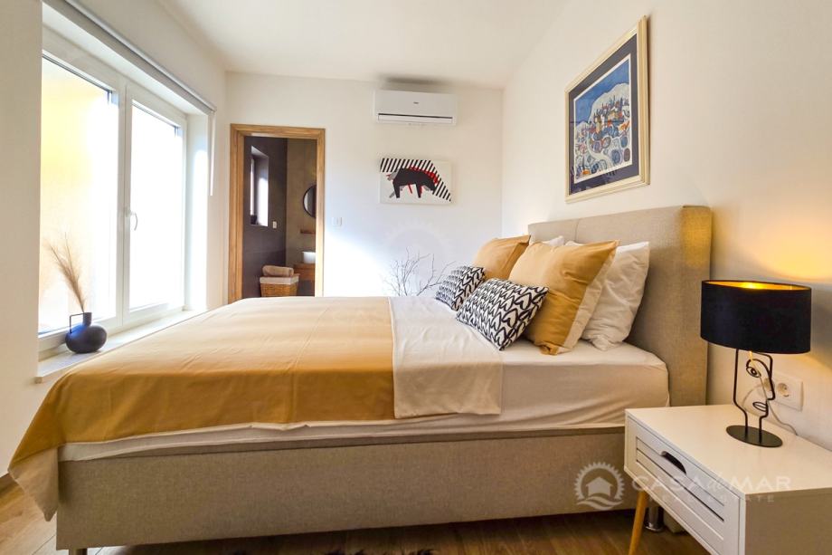 Ova izuzetna vila površine cca. 200 m2 se sastoji od prostranog dnevnog boravka, kuhinje i blagovaonice, sa izlazom na predivnu natkrivenu terasu i uređenu okućnicu. Vila raspolaže sa četiri spavaće sobe, dvije na prizemlju i dvije na katu, a svaka ima svoju vlastitu kupaonicu.