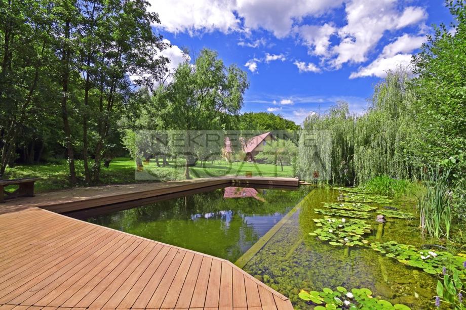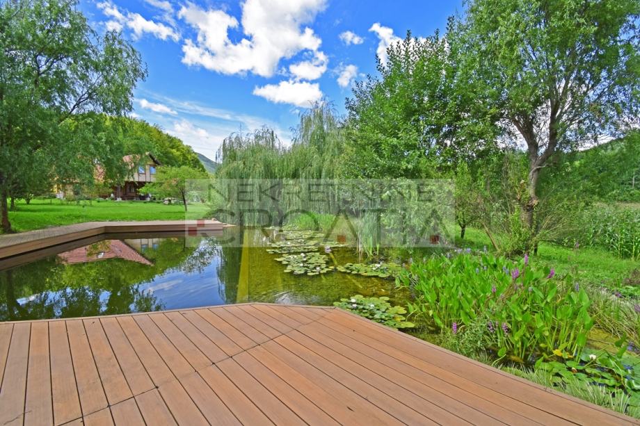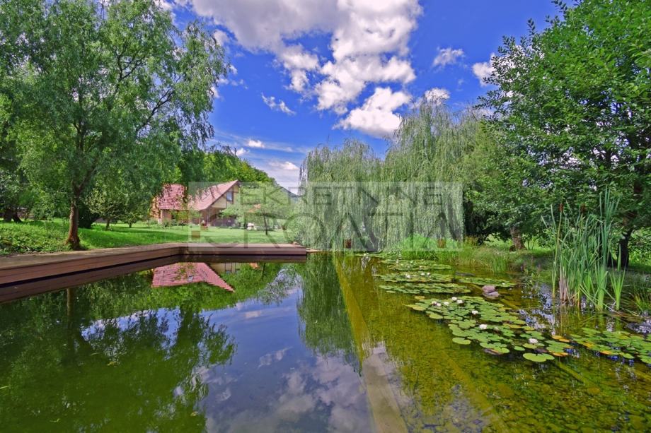 Na zemljištu i veliki vanjski bio bazen (cca 12x7 m). Pročišćavanje vode bazena bez kemikalija prirodnim putem.