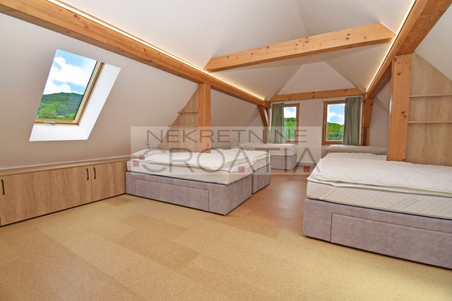 20 km od VARAŽDINA, 65 km od ZAGREBA! Podno planine Ivanščice, u prekrasnoj, idiličnoj lokaciji, okružen šumom i livadama, između dva bistra planinska potoka sagrađen je objekt, koji se može koristiti za poslovnu, smještajnu djelatnost ili za vlastite potrebe.