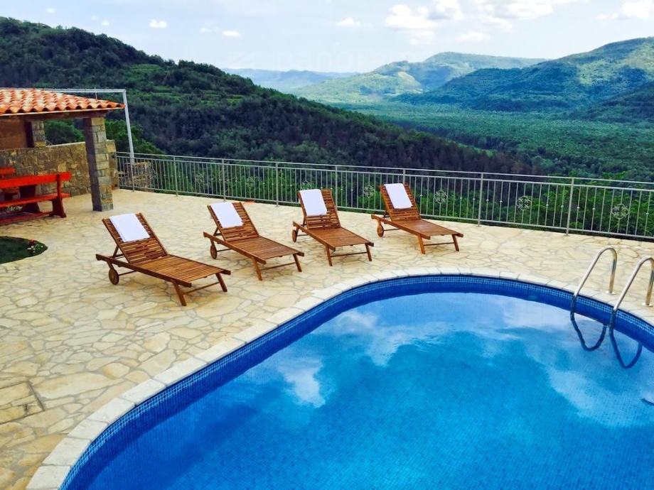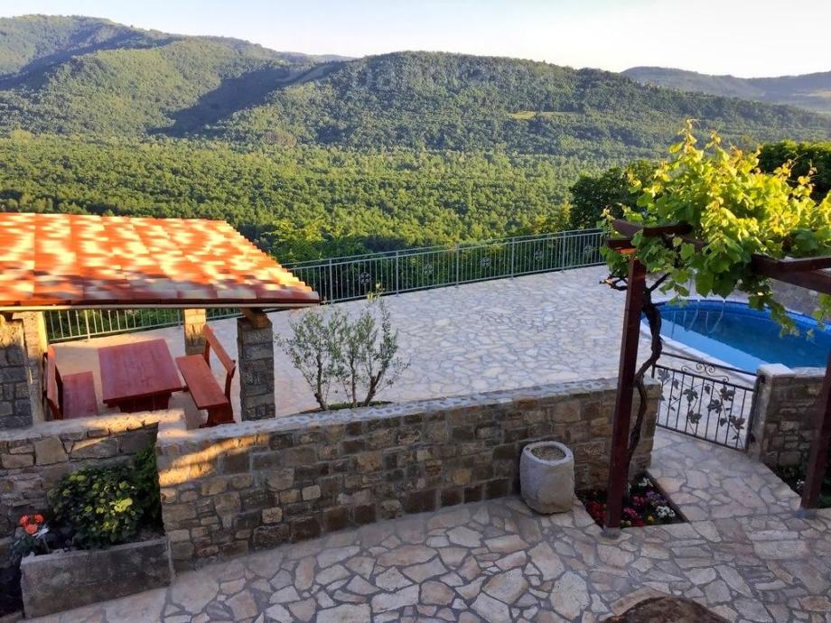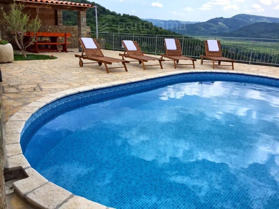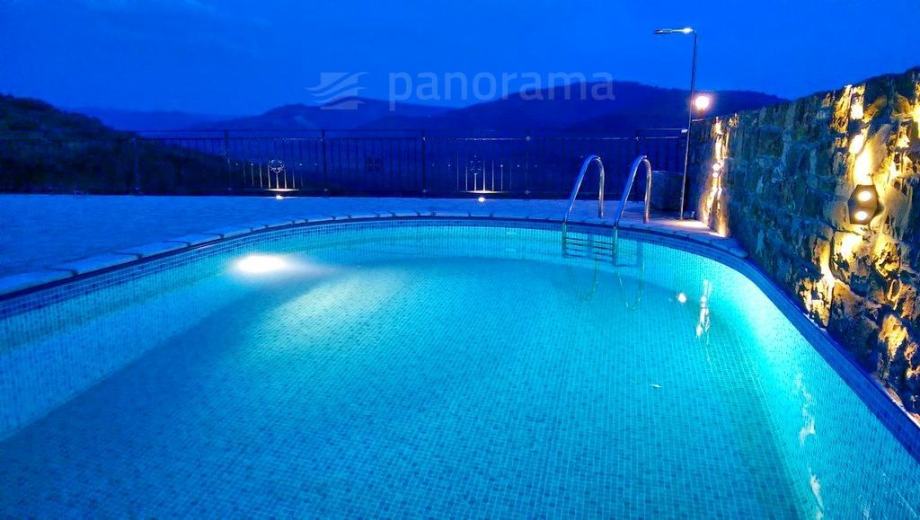 Ispred kuće se nalazi popločano dvorište s bazenom površine 18m2, sunčalištem i natkrivenom terasom s roštiljem. Lijevo od velike kuće se nalazi i manja kamena kuća, također renovirana i dijelom namještena, površine cca 60m2 od čega se u prizemlju nalazi jedna velika prostorija u funkciji dnevnog boravka, kuhinje i blagovaonice s kaminom, te kupaonica, a na katu su 2 spavaće sobe i hodnik.