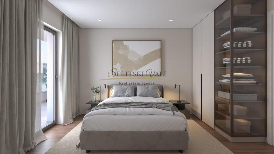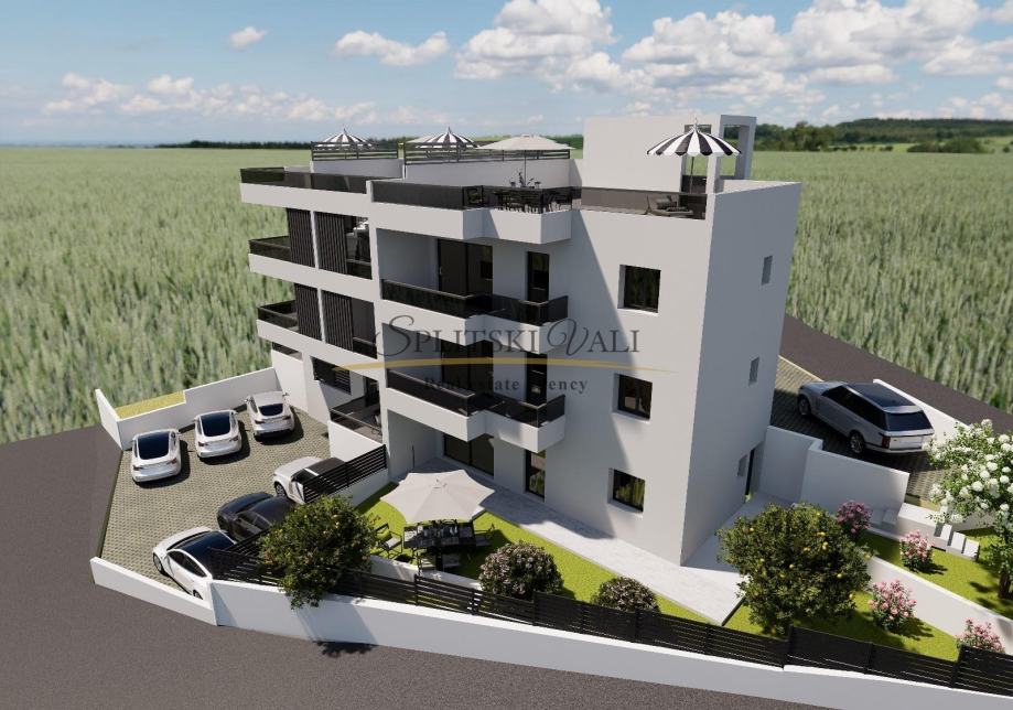 Sastoji se od kuhinje s dnevnim boravkom, hodnika, dvije spavaće sobe, kupaonice i terase i dva vrta. Stan ima neto površinu 46,06 m² + terasa 35.85 m2