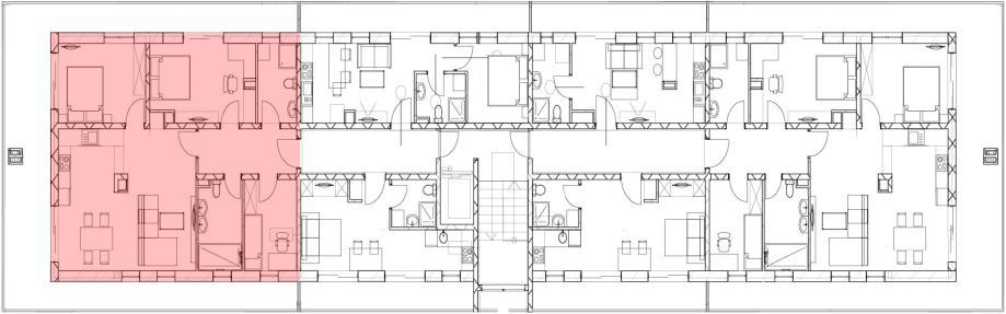 Na katu je smješteno 9 stambenih jedinica kojima se pristupa zajedničkim liftom i stubištem.