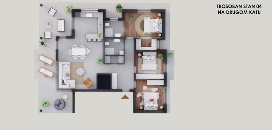 Stan je izvrstan izbor za kupce koji žele nešto više — penthouse s nadstandardnom kvadraturom, vrhunskim rasporedom, tri spavaće sobe i velikim terasama, idealan za luksuzni odmor, stalni boravak ili kao promišljena investicija.
