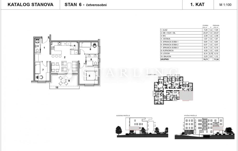 Prodaje se četverosoban stan neto stambene površine 72 m2 na prvom katu zgrade s liftom.