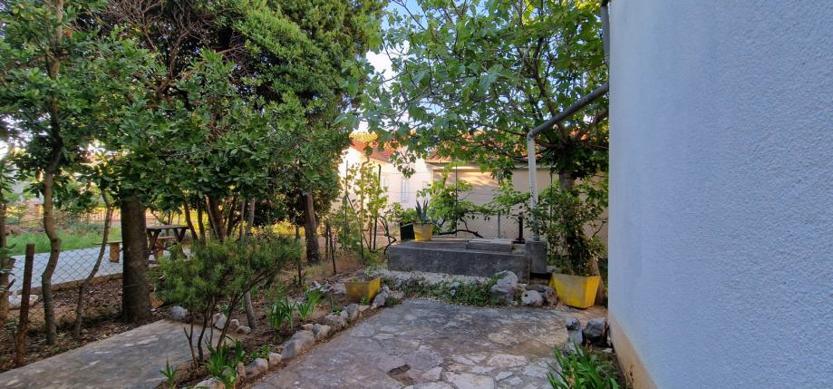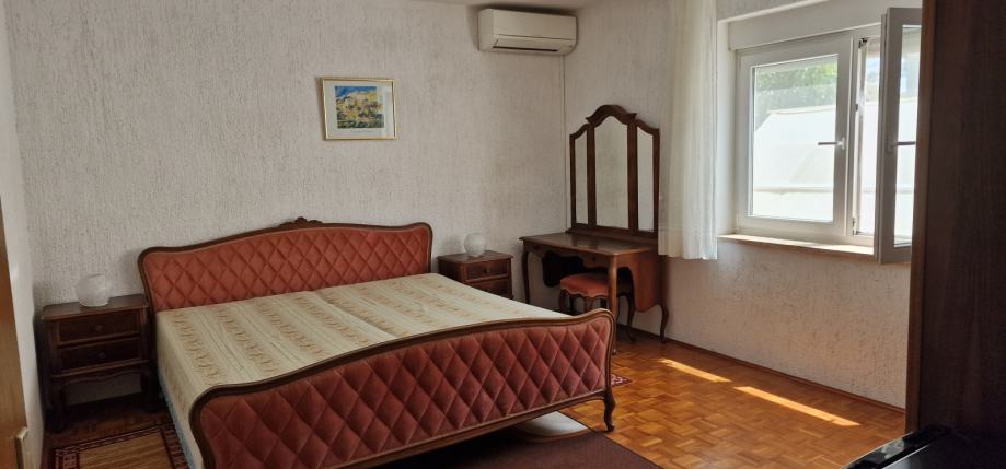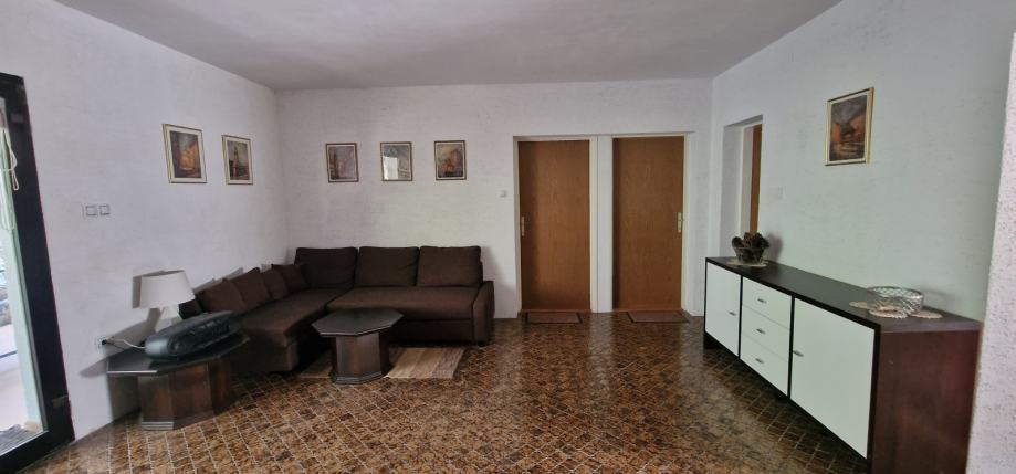Sastoji se od dnevne sobe iz koje se ulazi u dvije spavaće sobe, kupaonice i kuhinju. Stepenicama se dolazi na natkrivenu terasu iz koje je direktan ulaz u dnevnu sobu. Garaža od 20 m2 koja pripada apartmanu se nalazi u suterenu kuće. Također apartmanu pripada pola uređenog dvorišta (90m2).