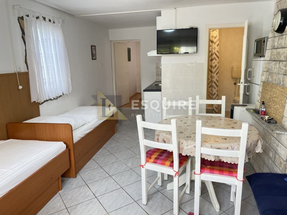 Na parceli od 461m2 izgrađena je kuća katnica stambene površine 275m2 u kojoj se nalazi 6 jednosobnih apartmana.