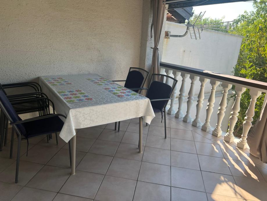 1. kat: Boravak sa kuhinjom, kupaonica, 2 spavaće sobe, natkrivena terasa. Stepenice za 1. kat odvojene od prizemlja.
