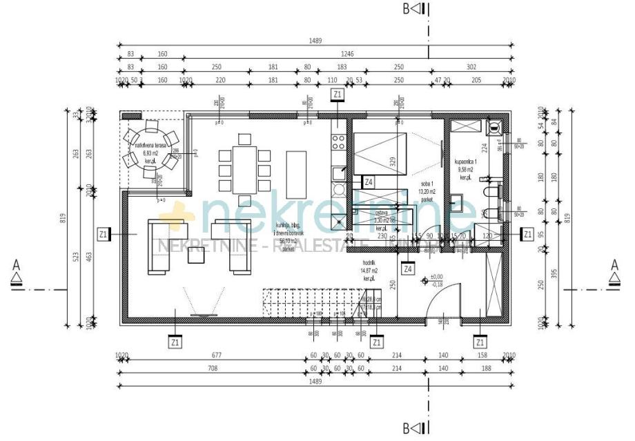 Prizemlje (100,52 m²): otvoreni dnevni prostor s kuhinjom i blagovaonicom, spavaća soba, kupaonica, hodnik i ostava – idealno za svakodnevni boravak i opuštanje.