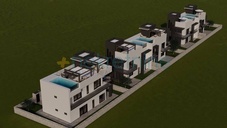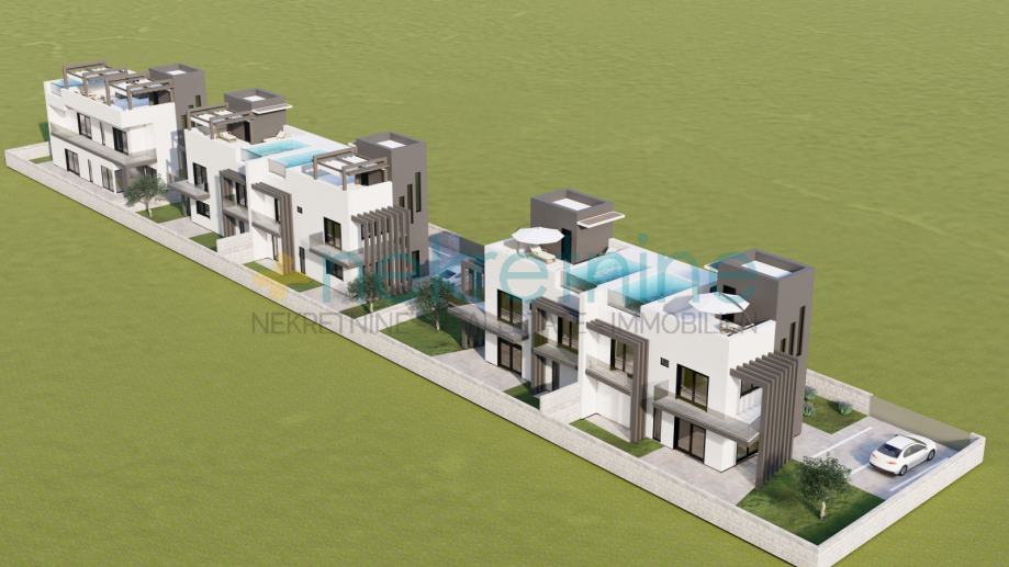 Vila zauzima ukupnu netto površinu od 148,80 m², raspoređenu na dvije etaže te dodatnu krovnu terasu s bazenom. Nalazi se u sklopu dvojnog objekta ukupne površine 297,56 m², a moguće je kupiti svaku vilu zasebno ili cijeli objekt.