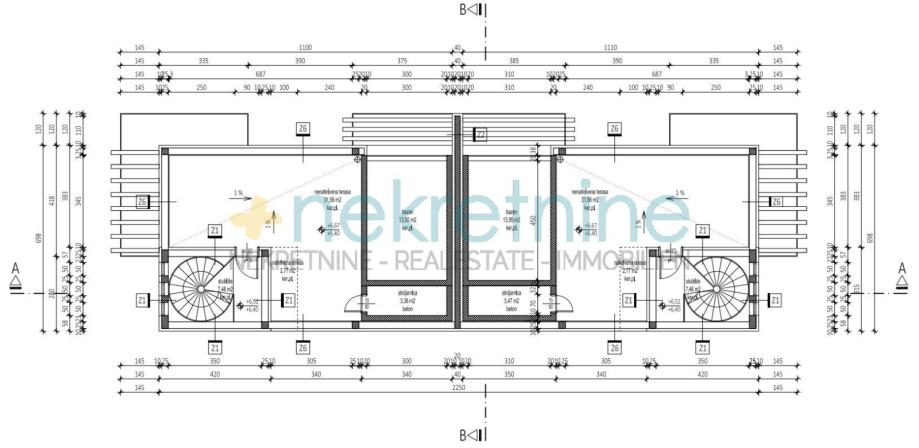 Krovna terasa: nenatkriveni prostor (7,86 m²) i natkriveni dio (1,39 m²) s privatnim bazenom – idealno mjesto za opuštanje i uživanje u pogledu.