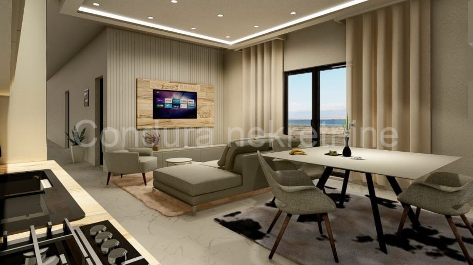 Apartman obiluje prirodnom svjetlošću koju daju prozori od poda do stropa te stvaraju prozračan, svijetao i ugodan ambijent.